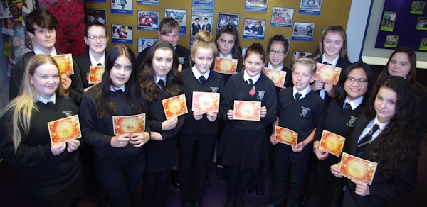 The competition involved the learners writing a story or poem, inventing a new word or designing a comic strip. Each year group saw three winners receive a gift voucher of their choice. First place in Year 7 went to Nicole Verches, Year 8 Libby Williams, Year 9 Emily Parry, Year 10 Cristina Costea and Year 11 Imogen Lancaster Mahoney. They are pictured above alongside the learners who were placed second and third..